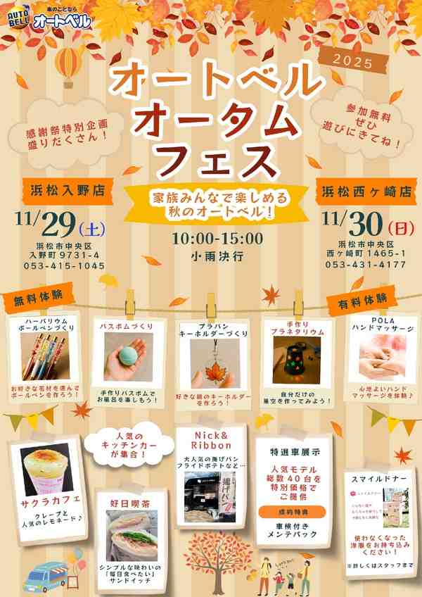 В итоге, "Auto Bell Autumn Fest" – это не просто ярмарка, а напоминание, что автомобильная жизнь полна сюрпризов. От уличной еды до благотворительности, от handmade до выгодных покупок – все в одном флаконе. Если вы в Хамамацу или окрестностях, не сидите дома: приезжайте, поешьте, порисуйте и, возможно, уедете на новой (ну, почти новой) машине. Ведь в конце концов, что может быть лучше, чем сочетать страсть к авто с долей иронии над современным миром?