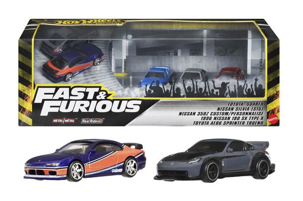А теперь кульминация: сет Hot Wheels Premium "Wild Speed Tokyo Drift" за 5500 рублей. Пять машин в коробке, имитирующей паркинг: Nissan Silvia S15 (с граффити "Мона Лиза"), Nissan 350Z Custom, Toyota AE86 Sprinter Trueno, Toyota Soarer и Nissan 180SX Type X 1996. Это не просто модели – это портал в мир, где дрифт стал искусством. Фильм 2006 года с Ханом и Шоном Босвеллом повлиял на глобальную культуру: от Red Bull-ивентов в Азии до фанатских meet'ов. Hot Wheels, основанный в 1968 году как альтернатива скучным моделям, всегда был про скорость и фантазию – и здесь они на высоте.