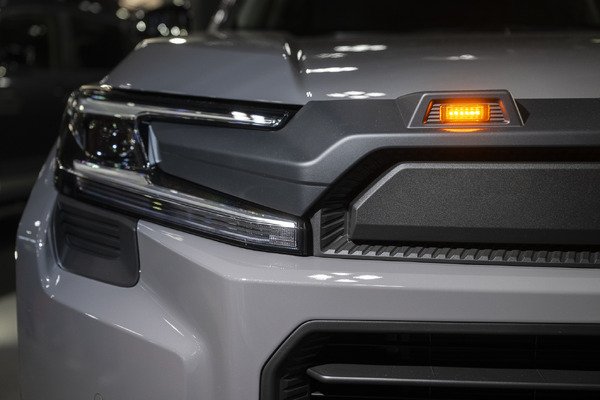 Звезда шоу — новинка 60-й серии Toyota RAV4 Adventure, переодетая в стиле JAOS. Этот компактный SUV, дебютировавший в 2018 году как хитовый кроссовер с полным приводом, обычно ассоциируется с семейными вылазками на дачу. Но JAOS добавляет перца: носовой протектор с четырьмя янтарными лампами в матовом чёрном корпусе превращает милую мордашку в оскал хищника. Бампер-гард с LED-баром и форточными грилями подчёркивает ruggedness, а фендер-гарниши, сертифицированные как опция Toyota (выступ всего 9 мм, без переделок), добавляют боковой мощи. Пресс-линии и фальшивые болты на фендерах — это как татуировки на офисном клеркe: намёк на дикую натуру под повседневным фасадом.