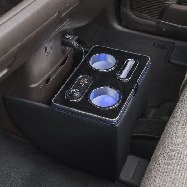 Но настоящая фишка — это LED-освещение, которое превращает банальный бокс в элемент интерьера будущего. На верхней поверхности два держателя для напитков и вертикальный слот для смартфона с беспроводной зарядкой. Включите питание кнопкой — и синий свет мягко разливается по держателям и слоту, создавая уютную атмосферу для вечерних поездок. Яркость регулируется в трёх уровнях, так что вы не ослепнете, как в дискотеке, но и не будете шарить в темноте в поисках бутылки воды. А для тех, кто предпочитает проводную жизнь, здесь PD-совместимый Type-C (до 20 Вт) и QC-совместимый Type-A (до 22,5 Вт), плюс классическая розетка прикуривателя. И да, порты подсвечиваются — никаких "куда ж этот флеш втыкать?" в потёмках.