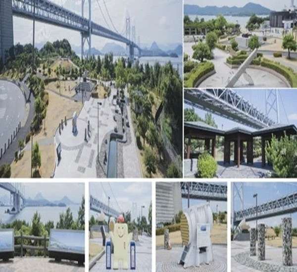 Yushima PA — это не просто асфальт и скамейки. Южная часть с насыпной смотровой площадкой и садом предлагает панораму на 40 островов Сето Накай и сам мост, который в лучах заката выглядит эпично. Здесь есть 'X'-образные солнечные часы — дань точности японских мастеров, — уютные павильоны и даже "わたるカメラ台", инсталляция с персонажами для селфи. А для гиков-автомобилистов: модели кабелей моста и буровые керны из 1980-х, напоминающие о том, как строили эту махину без современных дронов и ИИ.