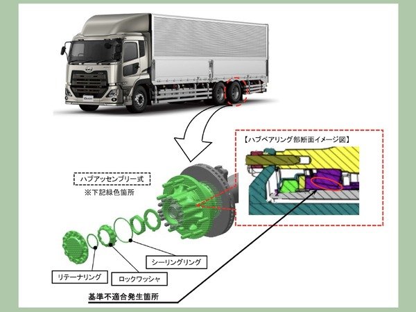 UD Trucks оперативно отреагировал: все затронутые грузовики будут отозваны для бесплатного ремонта. Механики нанесут специальную смазку на гайку хаб-ассембли, заменят стопорную шайбу, удерживающее кольцо (retainer ring) и уплотнительное кольцо (sealing ring) на новые. Если шайба уже выпала, то вся хаб-ассембли заменяется целиком. Процедура звучит просто, но для тяжелых грузовиков вроде Quon, где нагрузка на оси огромна, это критично. В России, где дороги не всегда идеальны, вибрации усиливают риски — вспомните ямы на федеральных трассах или бездорожье в регионах.