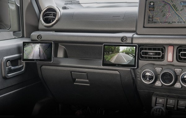 А теперь ирония судьбы: Jimny, родившийся для первозданной природы, где GPS – это компас и звёзды, теперь готов к камерам и мониторам. Устанавливаете стойку у двери – и вуаля, идеальное место для сайд-камеры, чтобы не пропустить тот камень слева, который поджидает в засаде. Или сдвиньте в центр – и монитор станет вашим глазом на капоте, подчёркивая препятствия или просто отображая плейлист для дорожных баллад. Никакого "пост-апокалиптического" вида: всё сидит как влитое, без намёка на кустарщину. В конце концов, в мире, где даже скромный Jimny с его 1,5-литровым атмосферником (102 л.с., кстати, вполне для покорения трассы) конкурирует с электрокарами, такой аксессуар – это шаг к будущему, но без потери души.