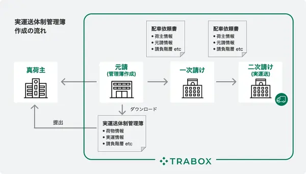 Суть обновлений — в добавлении ключевых полей для "реального транспортного реестра" (Jitsuuunsou Taisei Kanri-bo). Это документ, который prime-контрактор должен показать заказчику по запросу. Подрядчики не создают его с нуля, но обязаны вести записи и отчитываться. Trabox интегрировал всё это: создайте заявку на перевозку или укажите номер машины — и данные автоматически заполнят реестр. Никакого ручного ввода! Ещё круче: система генерирует полный реестр для скачивания одним кликом. Прощай, Excel-кошмар и стопки бумаг.
