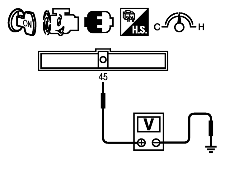 10.ECM45番端子(エアフローセンサ信号)とアース間の電圧を点検する。