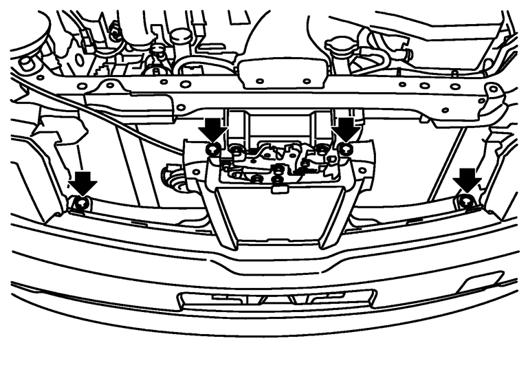 - 13.バンパーレインフォースメントASSY取付ナット(左右)を外し、バンパーレインフォースメントASSYを取り外す。