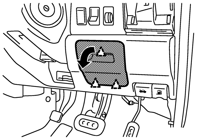 - 助手席エアバッグモジュール取り付けボルト及びコネクターを外す。「SRS SRSエアバッグ」の助手席エアバッグモジュールを参照。