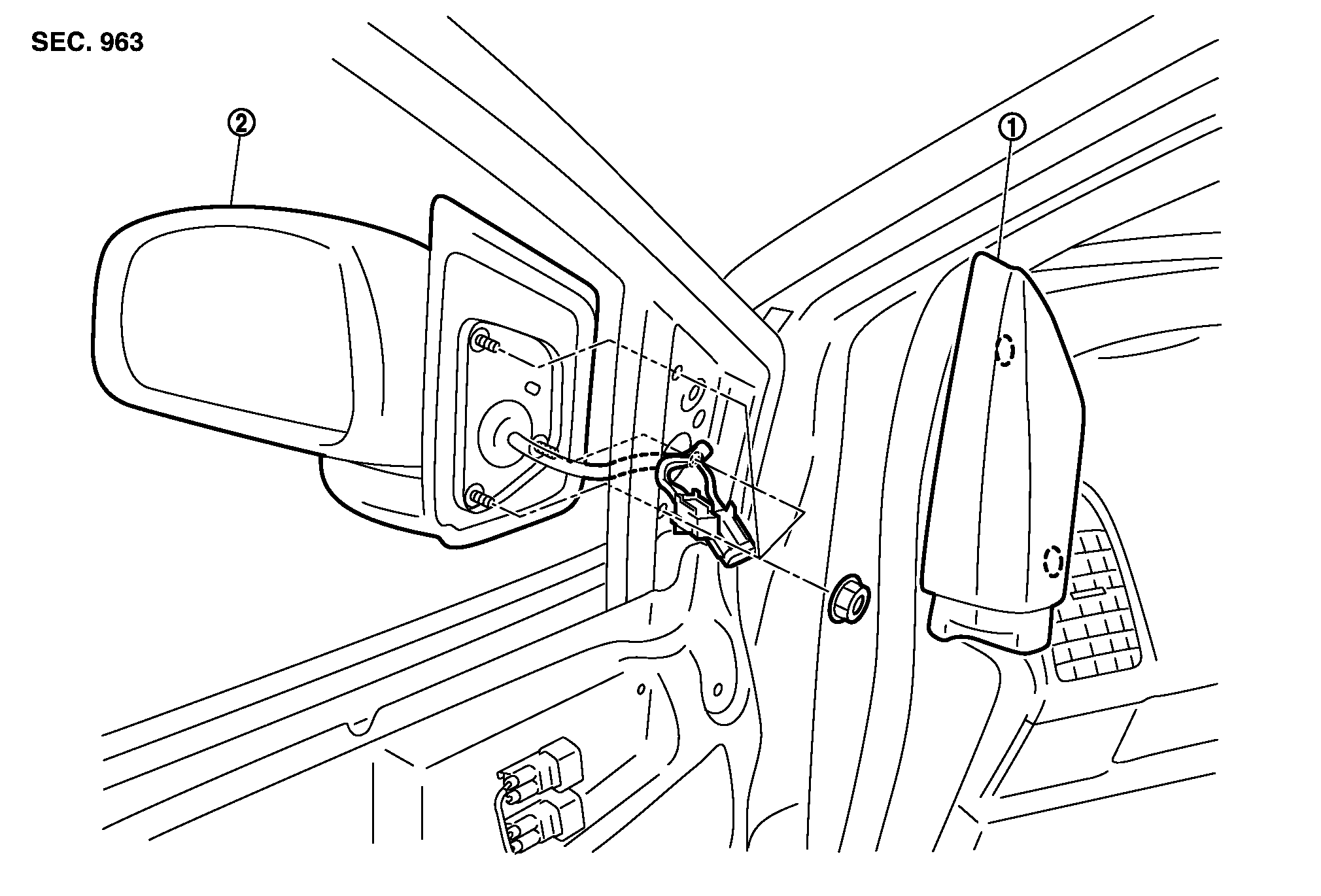 - 3.ドアミラーのハーネスコネクターを取り外す。