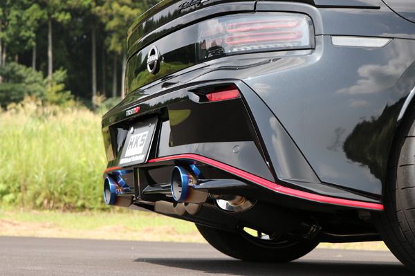 Дизайн тоже на высоте: хвостовые секции — Φ110 мм с синим градиентом и слитами, плюс логотип HKS снаружи. Сзади Z выглядит как хищник, готовый к прыжку, — идеально для тех, кто хочет не просто ехать, а заявлять о себе. Вспомните, как в 90-х HKS тюнинговали Skyline GT-R, делая их королями дрифта; теперь та же магия на Z.
