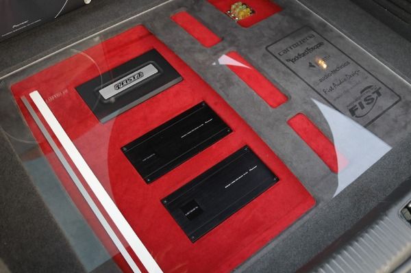 А теперь о басе — без него спорткар как вечеринка без ритма. Здесь роль исполняет ультратонкий сабвуфер Pioneer TS-WH1000A, прикреплённый к передней стенке багажника. Благодаря технологии HVT (High Voltage Transient), он такой плоский, что впишется даже в самый тесный уголок. Панель под ним тоже в красном — единство цвета, которое делает установку невидимой, пока не снимешь крышку. Иронично: в мире, где сабвуферы часто превращают багажник в "бум-бокс на колёсах", этот — как скрытый туз в рукаве, добавляющий глубины без лишнего шума.