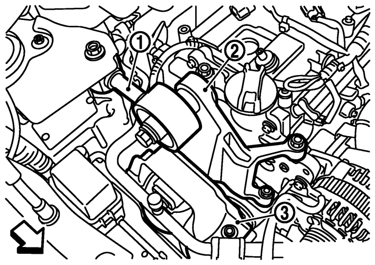 - 14.オルタネーターを取り外す。オルタネーターの取り外し、取り付けを参照する。