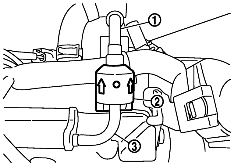 - 4.フューエルフィードホースがホースブラケットに固定されていない状態で、クイックコネクターを手で強く引っ張り、フューエルチューブから抜けないことで確実なかん合状態を確認する。