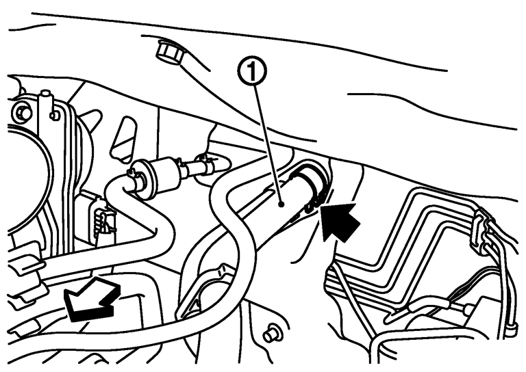 冷却水温が十分に下がった状態で行うこと。- 2.リザーバータンクを取り外し、冷却水を排出する。リザーバータンク取り外し、取り付けを参照する。