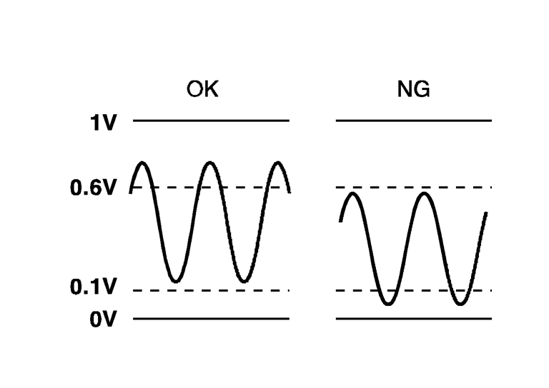 センサからECMに送信される信号電圧の最小値と最大値が一定以上にならない。