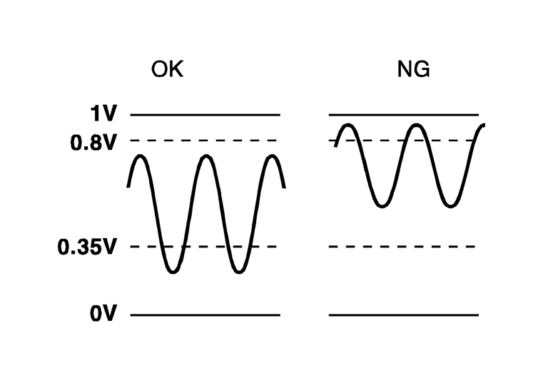 センサからECMに送信される信号電圧の最小値と最大値が一定以下にならない。
