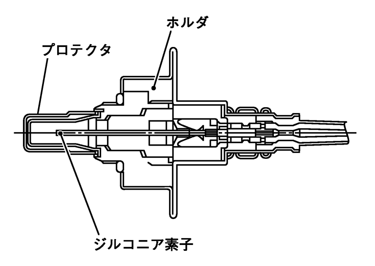 空燃比センサは、エキゾーストマニホールドに取り付けられ、排気ガス中の酸素濃度を検出しECMへ信号を送る。
