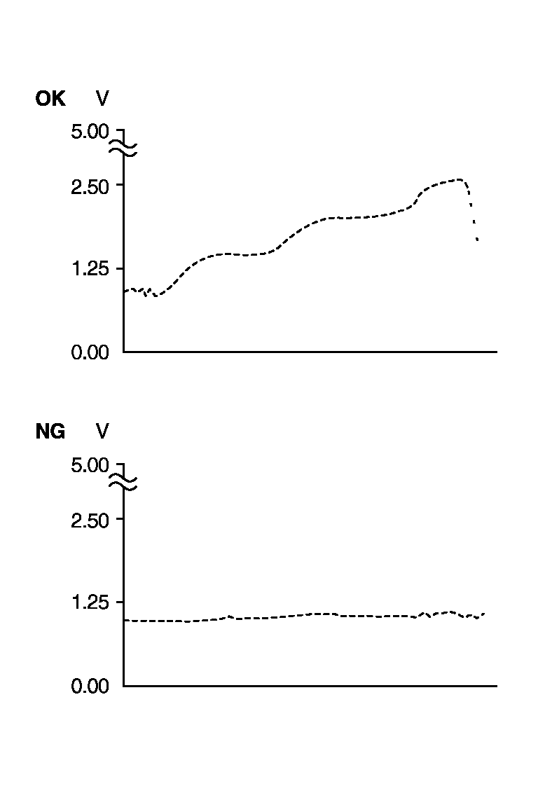 - エンジン回転数の上昇に応じて電圧が直線状に上昇するか確認する。NGの場合は、故障診断要領へ。OKの場合は、次のステップへ。