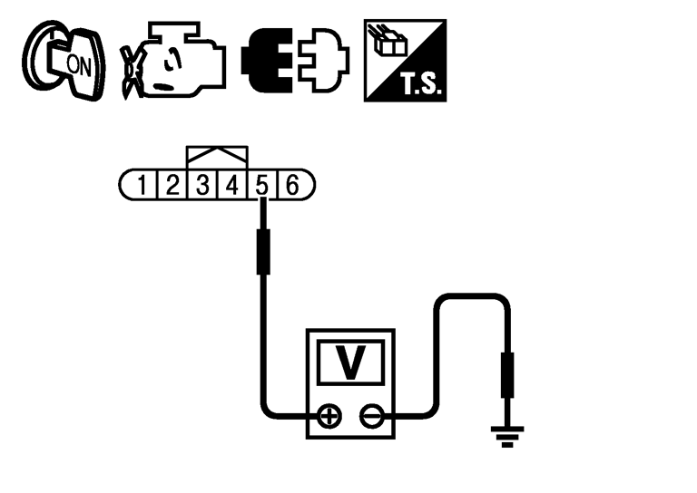 エアフローセンサ5番端子とアース間の電圧を点検する。