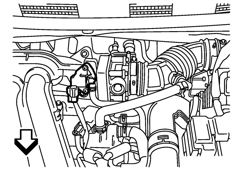 - EVAPパージコントロールソレノイドバルブに接続されているパージホースを外す。