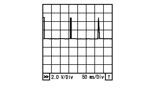 - オシロスコープの画面に下記の信号波形が表示されるか確認する。参考:パルス周期はアイドル回転数により変化する。