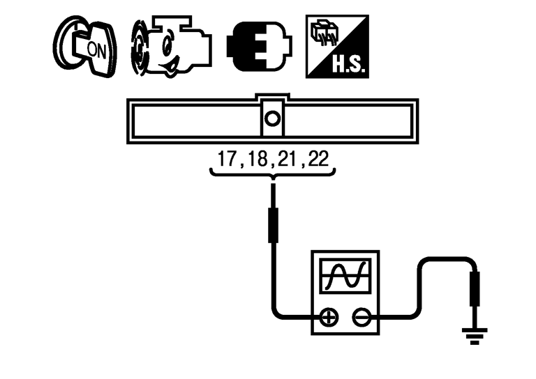 - オシロスコープを用いてECM17番、18番、21番、22番端子とアース間の電圧信号を読み取る。