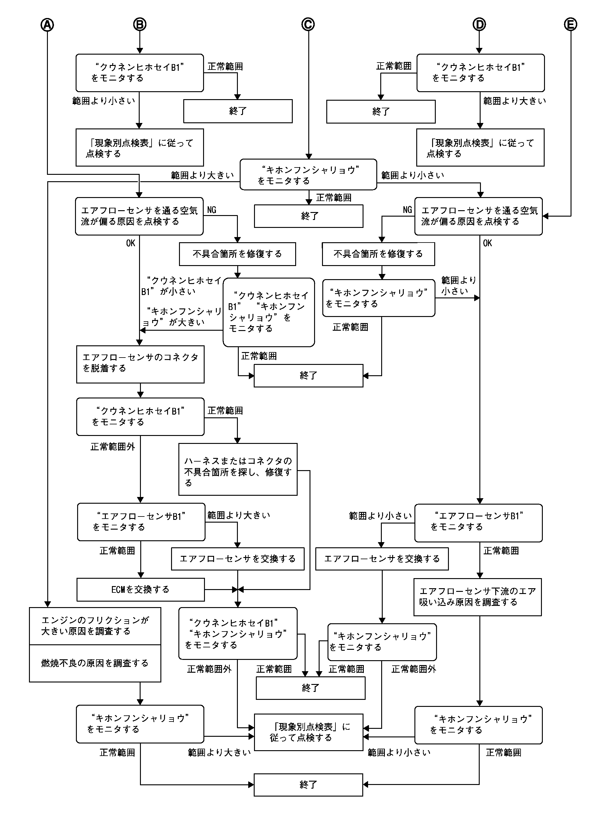28.吸気系の点検エアフローセンサ下流のエア吸い込み原因を点検する。