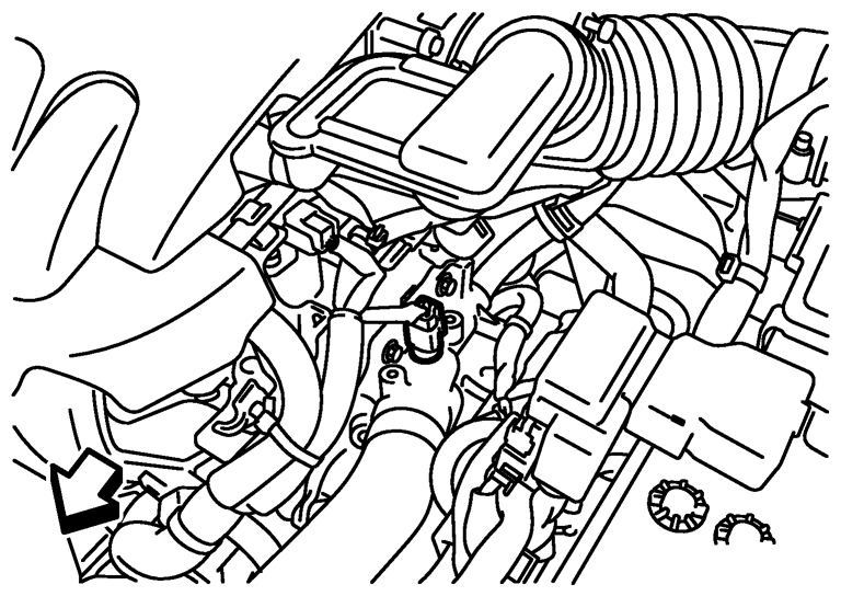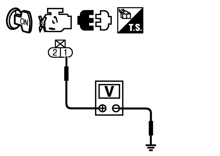 - CONSULT-IIIまたはテスタを用いて、水温センサ1番端子とアース間の電圧を点検する。