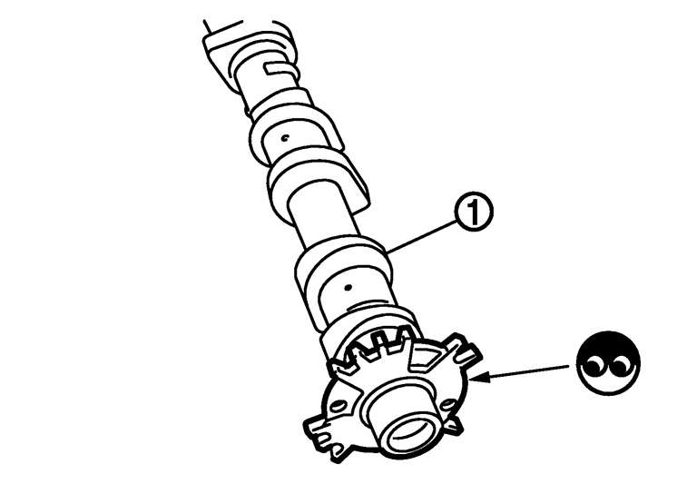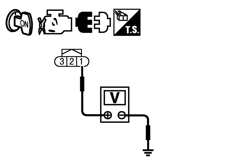 - CONSULT-IIIまたはテスタを用いて、カムシャフトポジションセンサ1番端子とアース間の電圧を点検する。