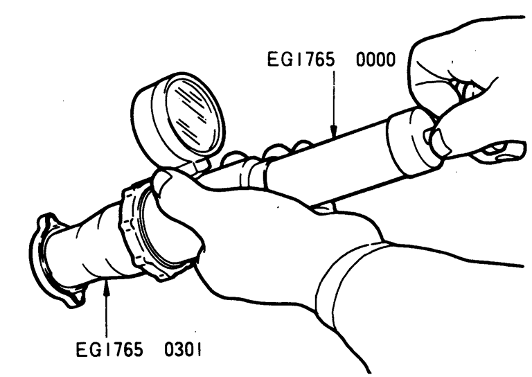 12.ラジエータキャップの点検ラジエータキャップテスタ(特殊工具)を用いてキャップに圧力を加える。