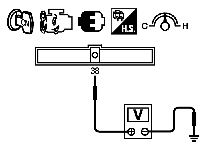 - 2.ECM 38番端子(水温センサ)とアース間の電圧を点検する。