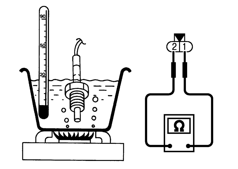 3.図のようにEGR温度センサの1、2番端子間の抵抗を点検する。