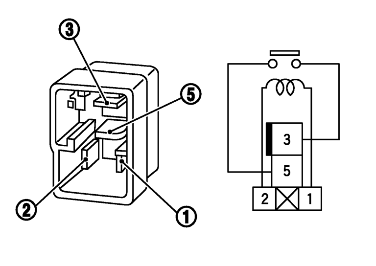 2.スタータモータリレー2の3 番端子と5 番端子端子の導通を点検する。