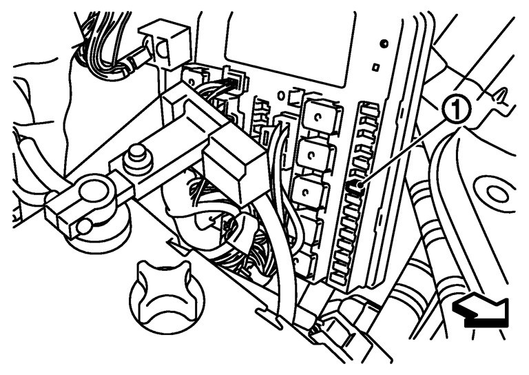 - 燃圧を除去するために、IPDM E/Rにあるフューエルポンプヒューズ15A(1)を取り外す。