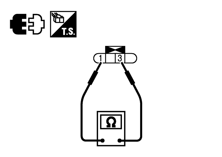 2.フューエルポンプの1番と3番端子間の抵抗を点検する。