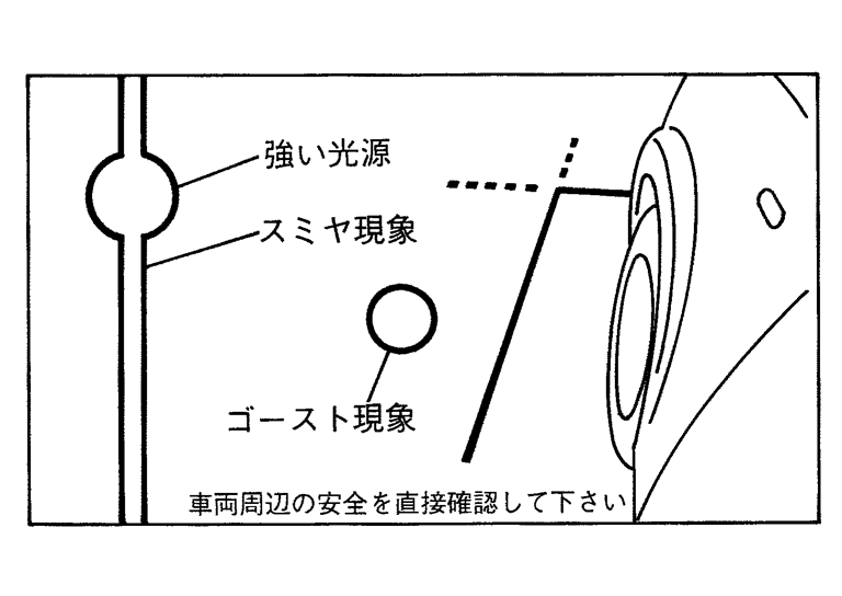 | 映像にゴースト*2 やハレーション*3 、ターンランプの光*4 のような現象がでる | 直接カメラに強い光が入ったり、夜間や暗い所で方向指示器や非常点滅表示灯を作動させたため | 故障ではない |