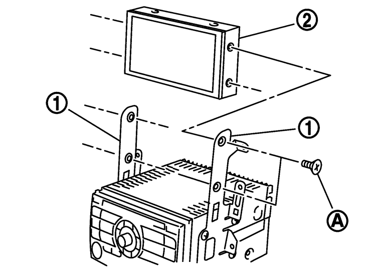 3.スクリュー(A)を外し、ブラケット(1)からディスプレイ(2)を取り外す。