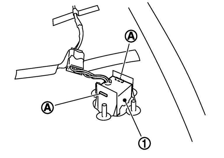 2.ヘッドライニングからマイクを固定している爪(A)及びコネクターを外し、マイク(1)を取り外す。