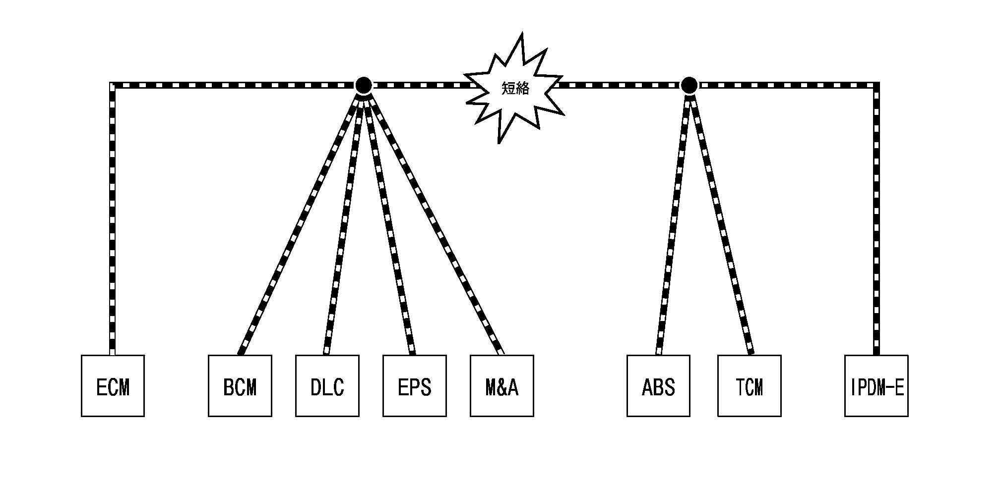 | CAN‐H、CAN‐Lのハーネス短絡 | ほぼ全てのユニットが作動不良、又はフェイルセーフモードになる |