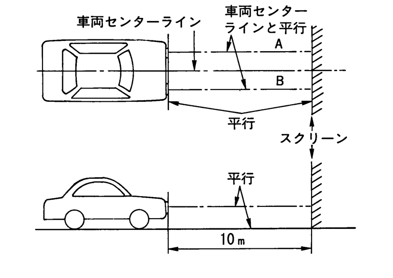 - 6.調整しないヘッドランプの光が、調整用スクリーンに当たらないように、つい立て等を使用し遮断する。