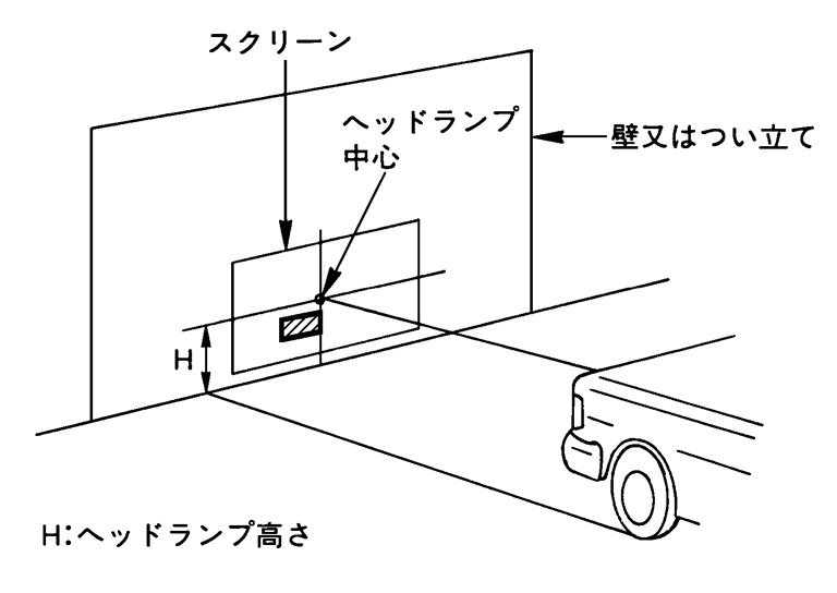 調整用スクリーン(明暗境界線図)による調整- 3.壁、又はつい立てに、ヘッドランプの中心位置と同じ位置の印を付ける。