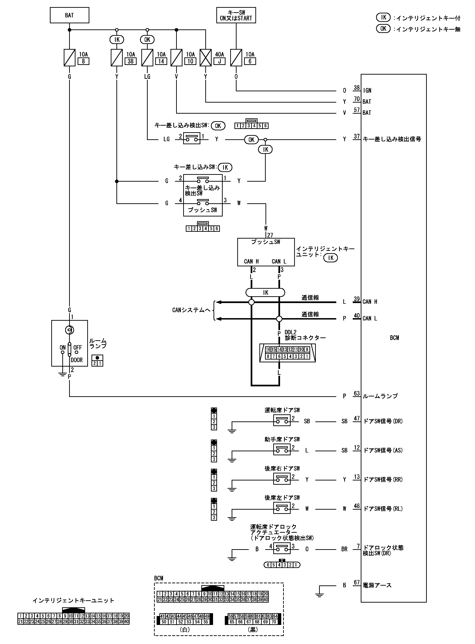 Схема системы внутреннего освещения с блокировкой ключей