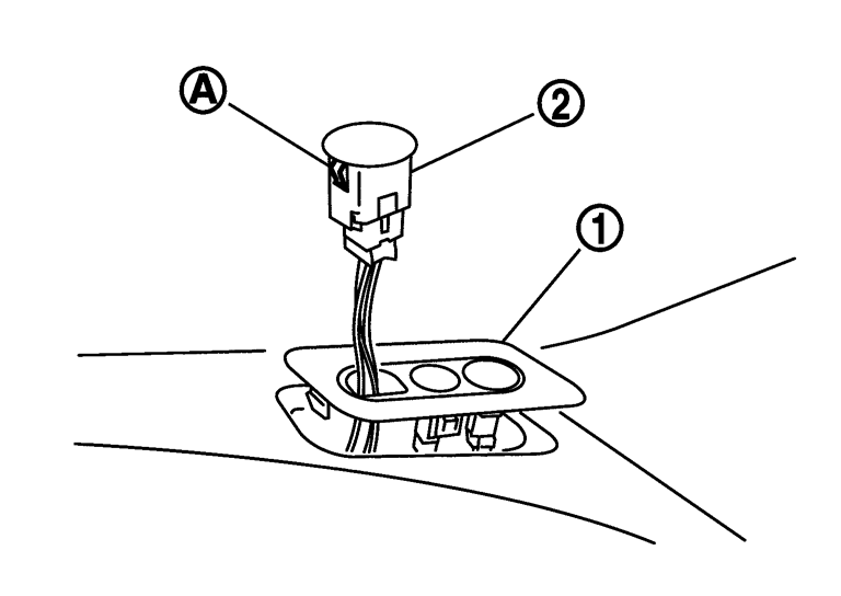 2.オートライト受光センサー(2)裏の爪(A)2箇所を押しながら上方に引き上げ、コネクターを外し、取り外す。