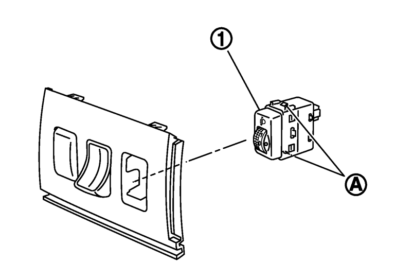 2.ヘッドランプレベライザースイッチ(1)裏の爪(A)を押しながら引き抜く。