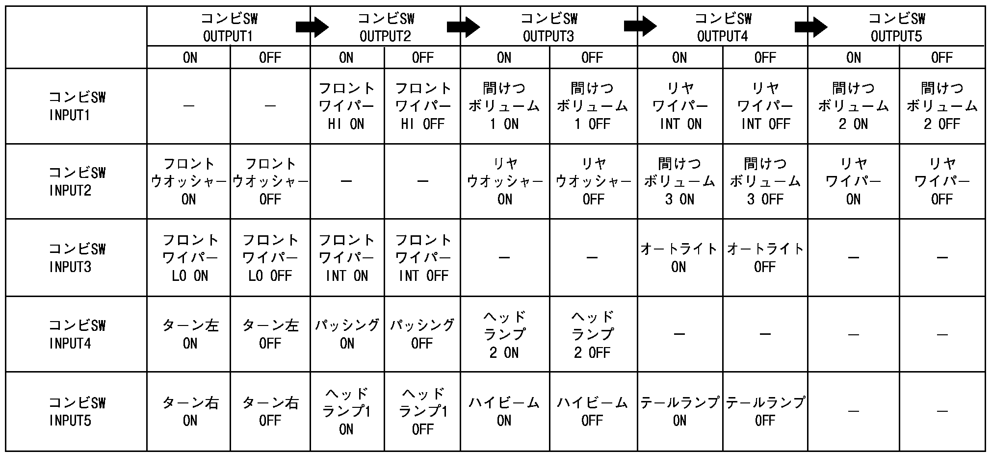 BCM−コンビネーションスイッチ作動表