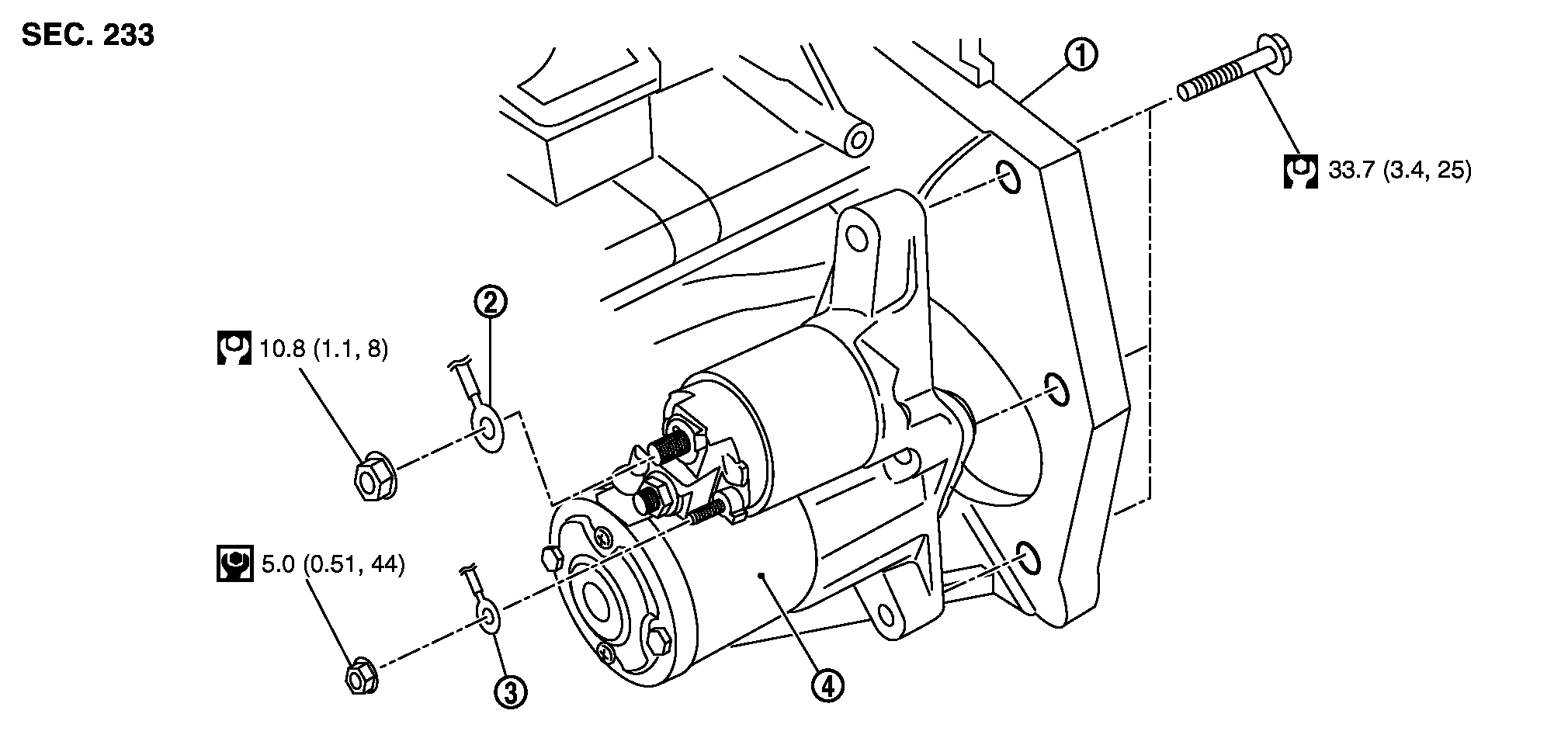 スターターモーター取り外しの際は、オイルプレッシャー スイッチを破損しないように注意すること。