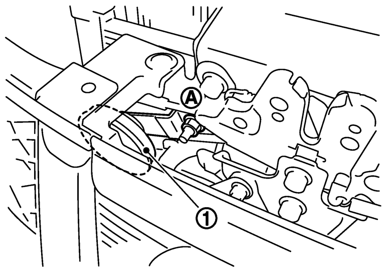 3.ホーン取付ナット(A)を外し、ホーン(1)を車両より取り外す。