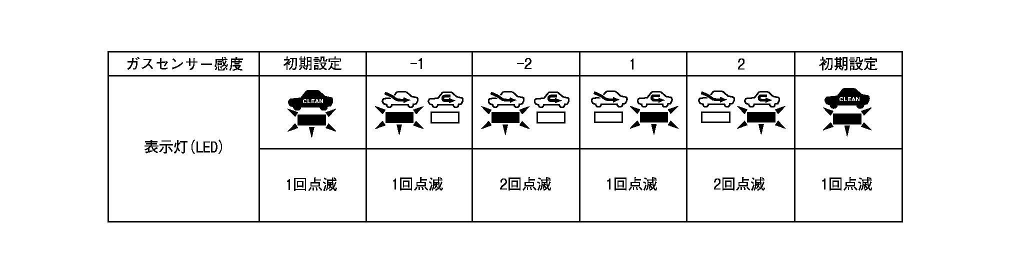 • バッテリーケーブルを外した場合、又はバッテリー電圧が9 V以下になった場合は、ガスセンサー感度調節機能の設定はキャンセルされる。