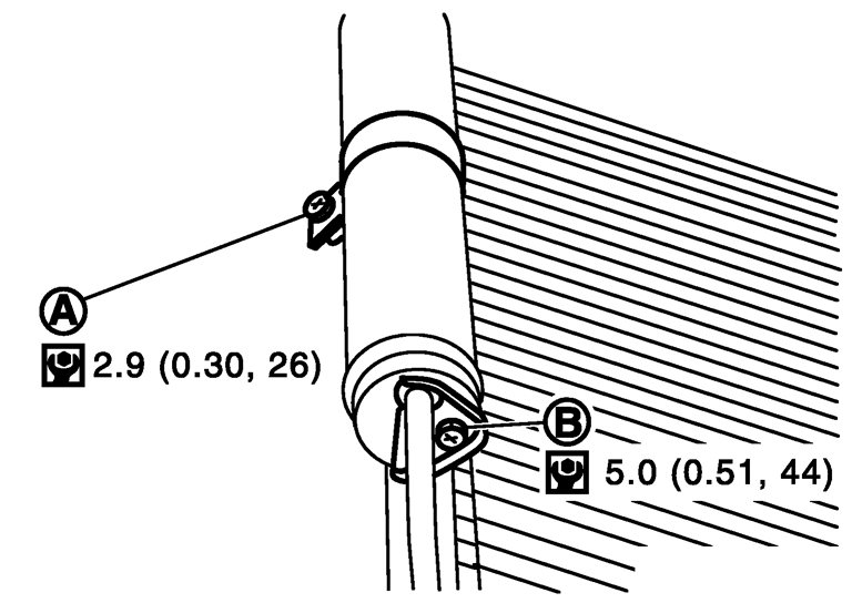3.リキッドタンク取付ボルト(A)及び(B)を外す。
