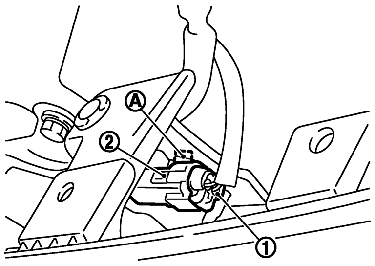 2.コネクター(1)及び取付クリップ(A)を外し、外気センサー(2)を取り外す。