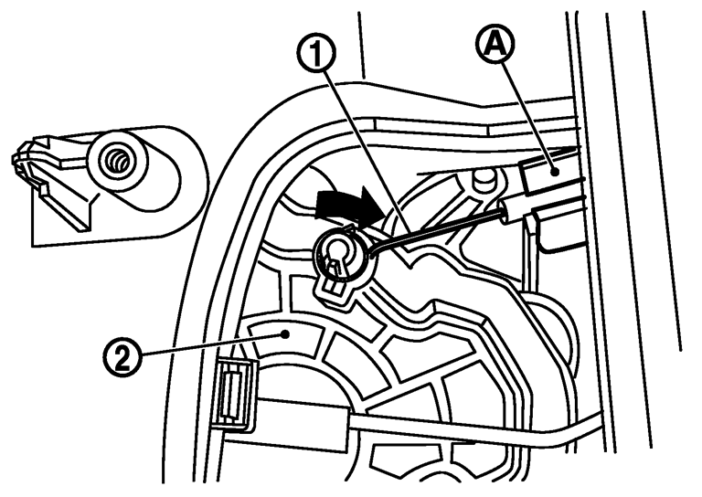 2.モードドアケーブル(1)をクランプ(A)から外す。